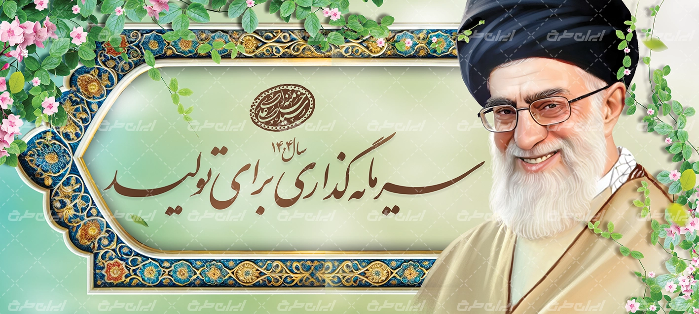 تصویر رهبری و متن شعار سال سرمایه گذاری برای تولید، که توسط تیم ایران طرح طراحی شده است.