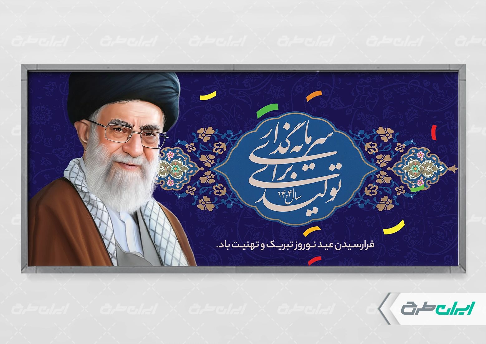 تصویر رهبری و متن شعار سال سرمایه گذاری برای تولید، که توسط تیم ایران طرح طراحی شده است.