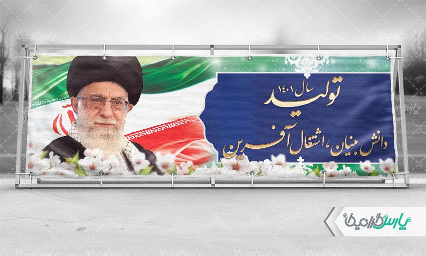- طراحی بنر با استفاده از تصویر ایت الله خامنه ای در طرح بنر شعار سال