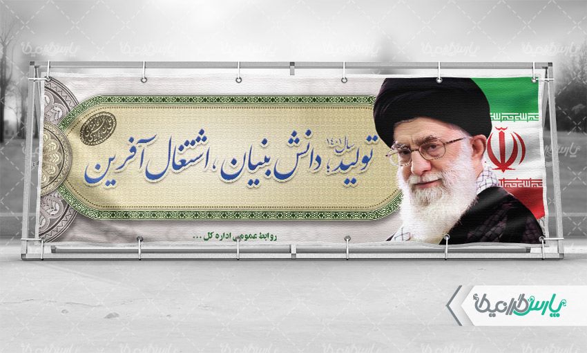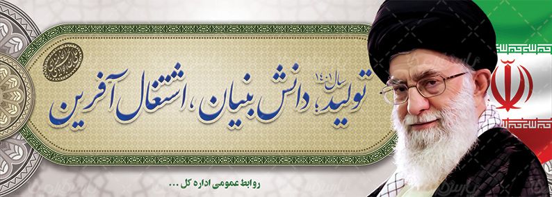 - طراحی بنر با استفاده از تصویر ایت الله خامنه ای در طرح بنر شعار سال
