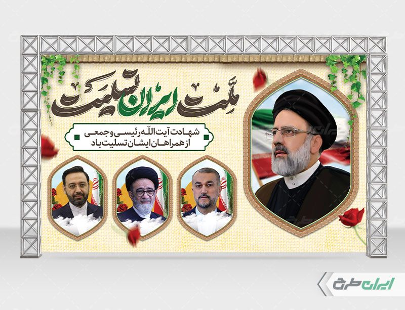 بنر تسلیت شهادت سید ابراهیم رئیسی، توسط تیم حرفه ای ایران طرح جهت استفاده کاربران سایت طراحی و به صورت لایه باز در دسترس کاربران قرار گرفته است.