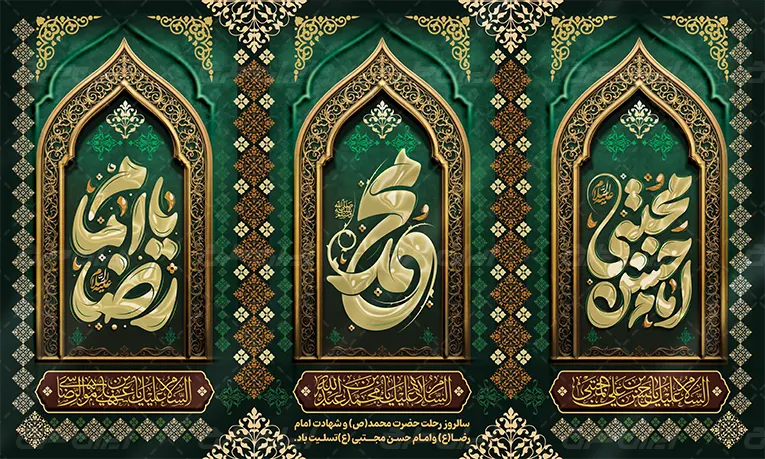 ضمنا به دلیل لایه باز بود طرح بنر تبریک رحلت پیامبر اکرم می توانید با استفاده از نرم افزار فتوشاپ طرح را ویرایش نمایید.