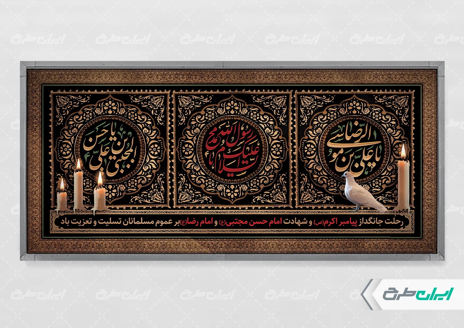 طرح بنر شهادت امام رضا و امام حسن مجتبی و رحلت پیامبر اکرم (ص)