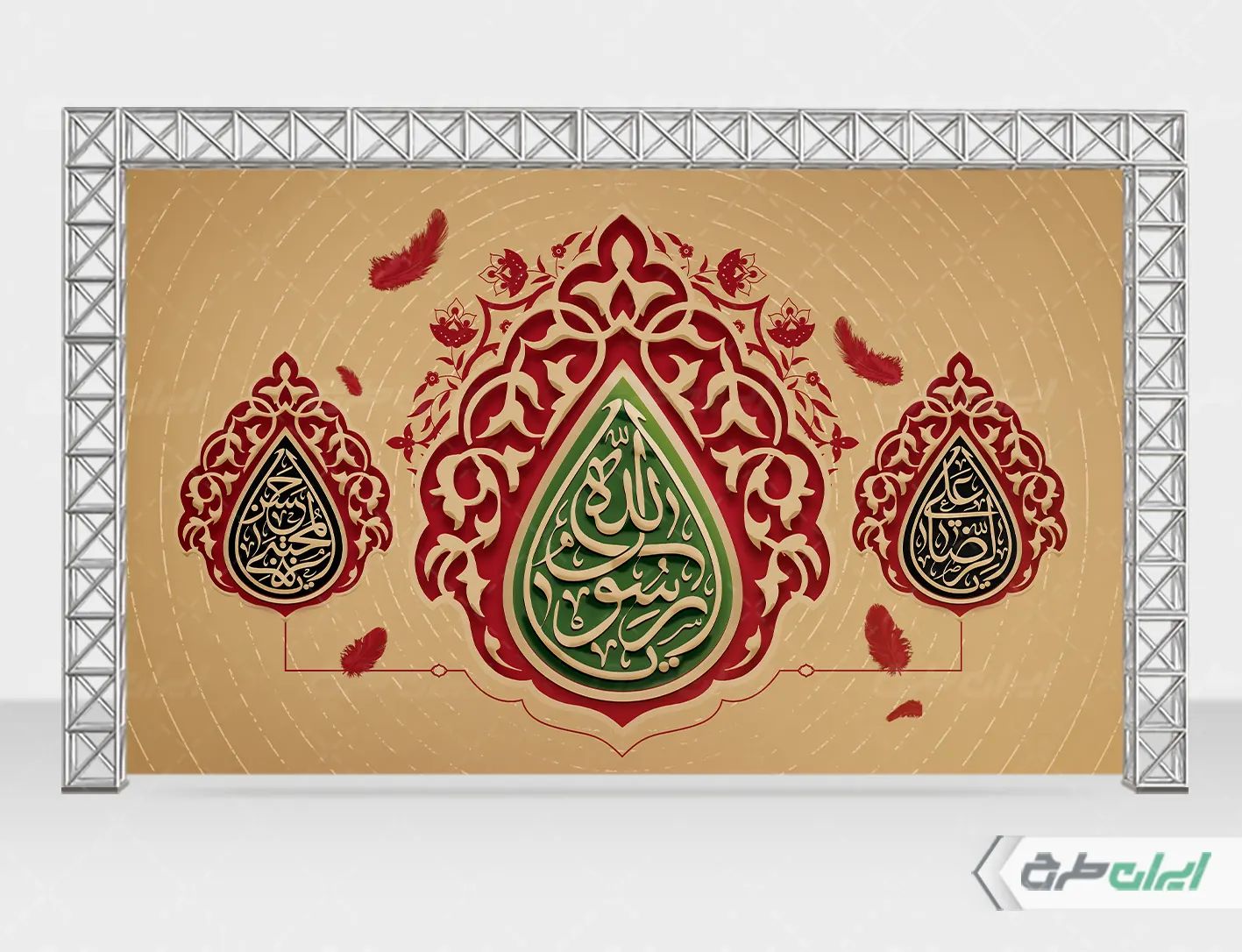 ضمنا به دلیل لایه باز بود طرح بنر تبریک رحلت پیامبر اکرم می توانید با استفاده از نرم افزار فتوشاپ طرح را ویرایش نمایید.