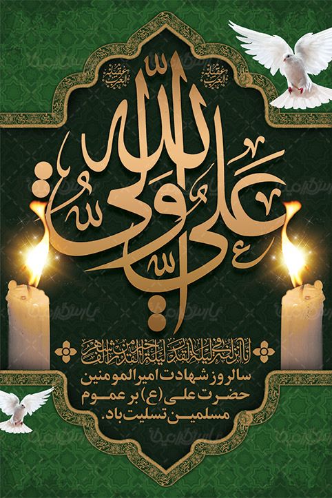 - طراحی بنر با استفاده از تصویر شمع و کبوتر در طرح بنر شهادت امام علی