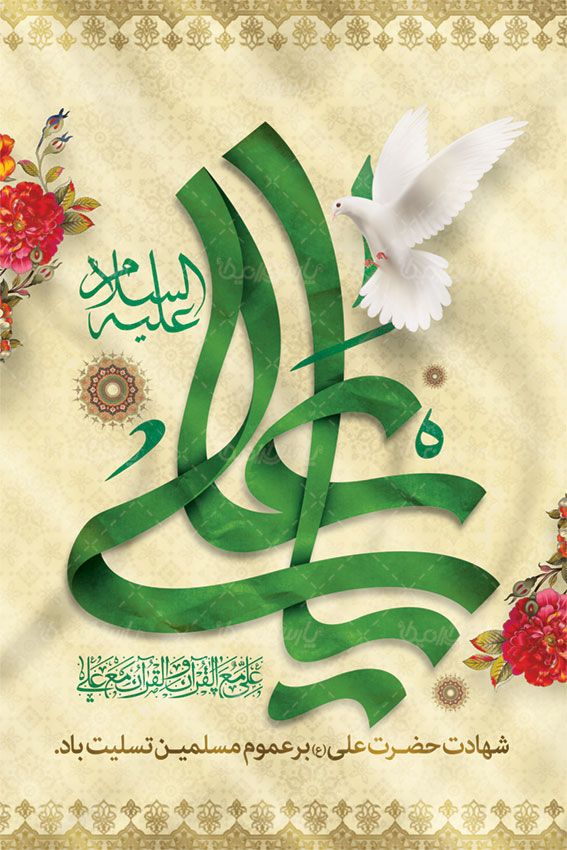 - طراحی بنر با استفاده از تصویر کبوتر و گل طرح بنر شهادت امام علی