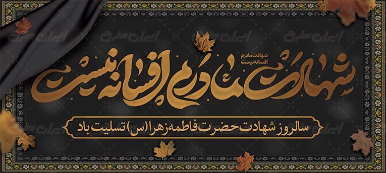 طرح بنر سالگرد شهادت حضرت فاطمه زهرا شامل: متن شهادت مادرم افسانه نیست ، نقوش اسلیمی ، نقوش مذهبی ، تذهیب و متن تسلیت سالروز شهادت حضرت فاطمه می باشد که توسط تیم ایران طرح طراحی شده است. به دلیل استفاده از عناصر و المان های با کیفیت در طرح بنر مناسبتی ، می توانید علاوه بر چاپ بنر (به صورت عمودی)، در استوری اینستاگرام و یا دیگر پلت فرم های فضای مجازی استفاده نمایید. ضمنا به دلیل لایه باز بود طرح بنر سالگرد حضرت فاطمه زهرا می توانید با استفاده از نرم افزار فتوشاپ تغییرات دلخواه خود را اعمال کنید.