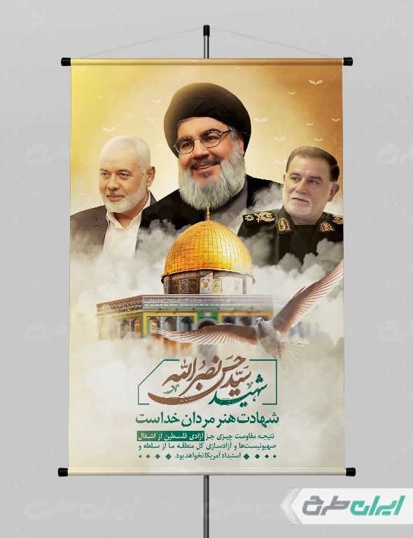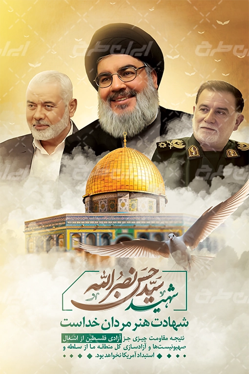 تصویر سید شهید حسن نصرالله و متن تسلیت شهادت ایشان میباشد که توسط تیم خلاق ایران طرح طراحی شده است.
