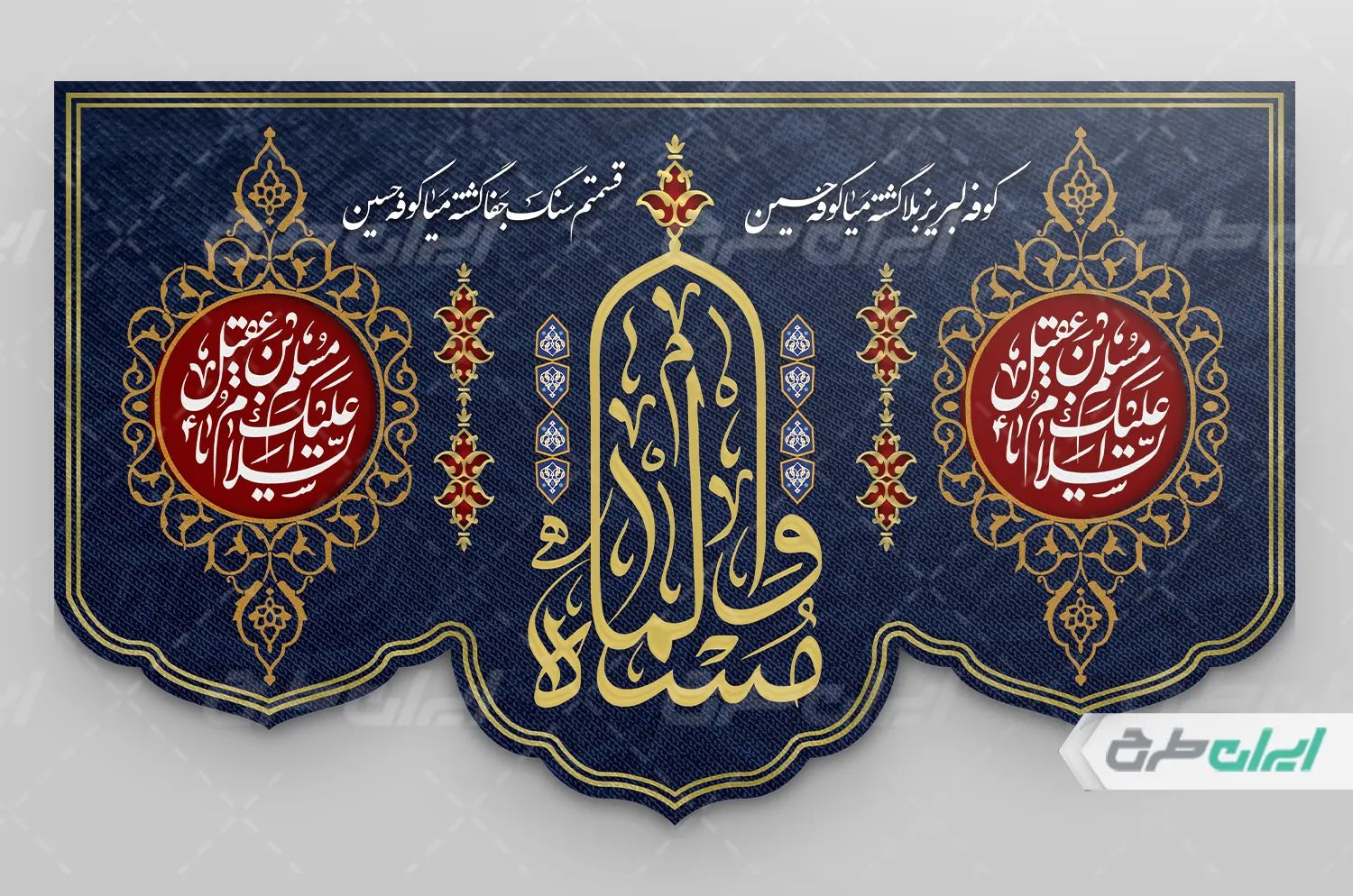 تذهیب و متن تسلیت شهادت مسلم بن عقیل می باشد که توسط طراحان ایران طرح در نرم افزار فتوشاپ طراحی شده است.