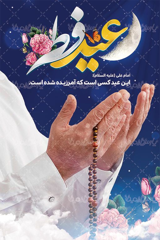 در طرح پوستر تبریک عید فطر از تایپوگرافی ( عید فطر ) استفاده شده است .