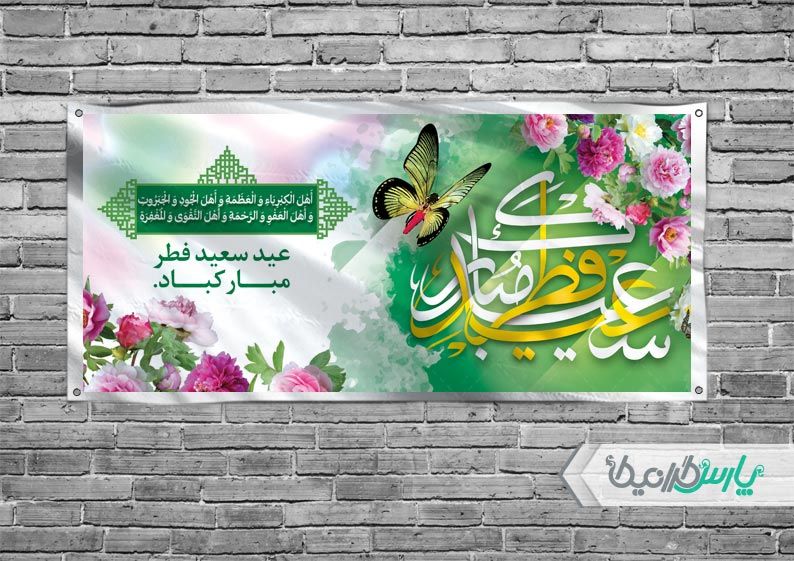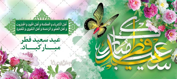 - طراحی بنر با استفاده از تصویر گل و پروانه در طرح بنر عید فطر