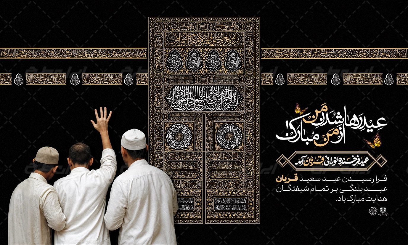 تصویر کعبه و متن تبریک عید قربان می باشد که توسط طراحان ایران طرح در نرم افزار فتوشاپ طراحی شده است.