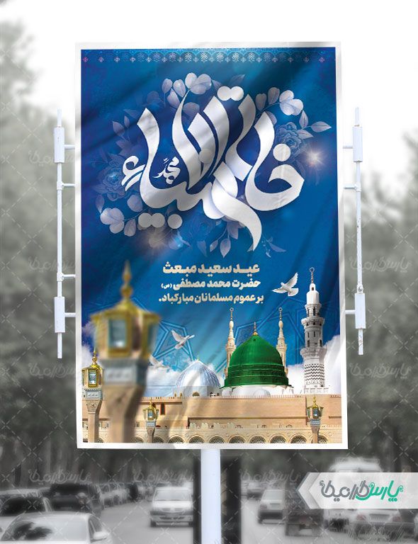 بنر لایه باز بنر عید مبعث، توسط تیم حرفه ای پارس گرافیک جهت استفاده کاربران سایت طراحی و به صورت لایه باز در دسترس کاربران قرار گرفته است.