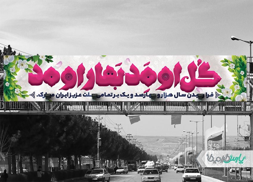 - طراحی بنر با استفاده از تصویر گل در طرح بنر عید نوروز