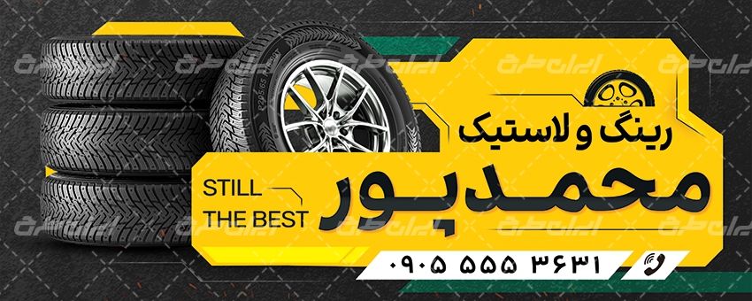 طرح بنر فروشگاه رینگ و لاستیک شامل: