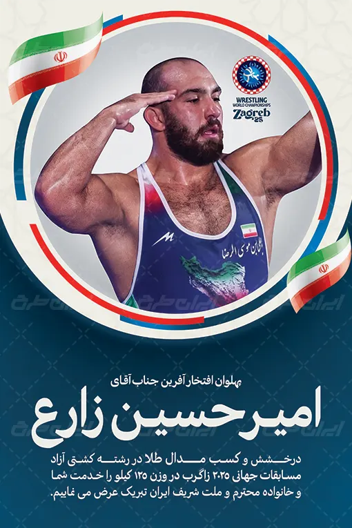 طرح پوستر تبریک کشتی زاگرب امیرحسین زارع