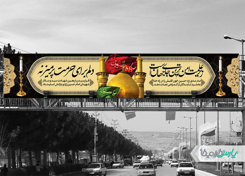 طرح بنراربعین حسینی شامل:تصویر حرم و شمع ، کادر مذهبی ، تذهیب و متن تسلیت اربعین حسینی و متن تسلیت اربعین میباشد که توسط طراحان پارس گرافیک در نرم افزار فتوشاپ طراحی شده است. به دلیل لایه باز (قابل ویرایش توسط کاربران در نرم افزار فتوشاپ Adobe Photoshop) بودن و کیفیت بالای عناصر و المان های استفاده شده در طرح بنر مناسبتی ، می توانید علاوه بر چاپ بنر(به صورت عمودی)، در استوری اینستاگرام و سایر پلت فرم های فضای مجازی استفاده نمایید.