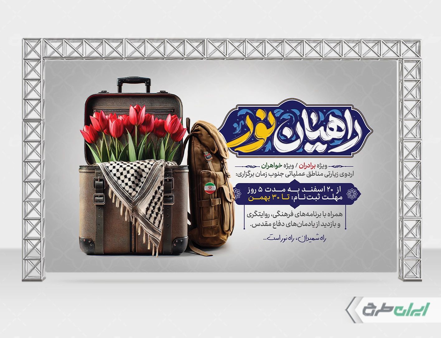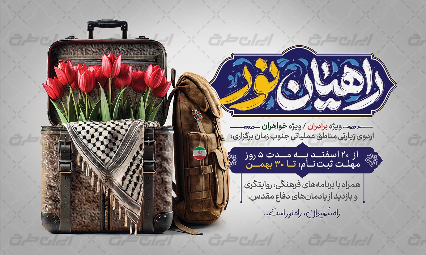 طرح بنر راهیان نور ، توسط تیم حرفه ای ایران طرح جهت استفاده کاربران سایت طراحی و به صورت لایه باز در دسترس کاربران قرار گرفته است.