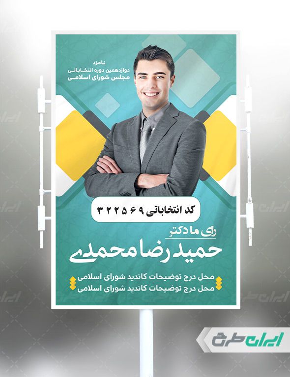 طرحپوستر انتخاباتی شامل: پرچم ایران و استفاده از آیکون تصویر شورا ، لیبل و شیپ های کاربردی می باشد که توسط طراحان ایران طرح در نرم افزار فتوشاپ طراحی شده است. به دلیل لایه باز بودن (قابل ویرایش توسط کاربران در نرم افزار فتوشاپ Adobe Photoshop) بودن و کیفیت بالای عناصر و المان های استفاده شده در طرح بنر ، می توانید از این طرح علاوه بر چاپ بنر(به صورت عمودی)، از سایر موارد تبلیغاتی از جمله نصب روی بیلبورد، استوری اینستاگرام و دیگر پلت فرم های فضای مجازی بهره ببرید.