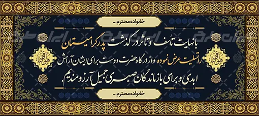 دانلود بنر تسلیت , ترحیم , طرح بنر تسلیت , طرح لایه باز بنر تسلیت , متن تسلیت , بنر ترحیم , طرح , طرح بنر ترحیم , بنر تسلیت , متن بنر تسلیت , طرح بنر تسلیت , بنر تسلیت لایه باز , بنر لایه باز تسلیت , تذهیب , متن ترحیم , تسلیت ,