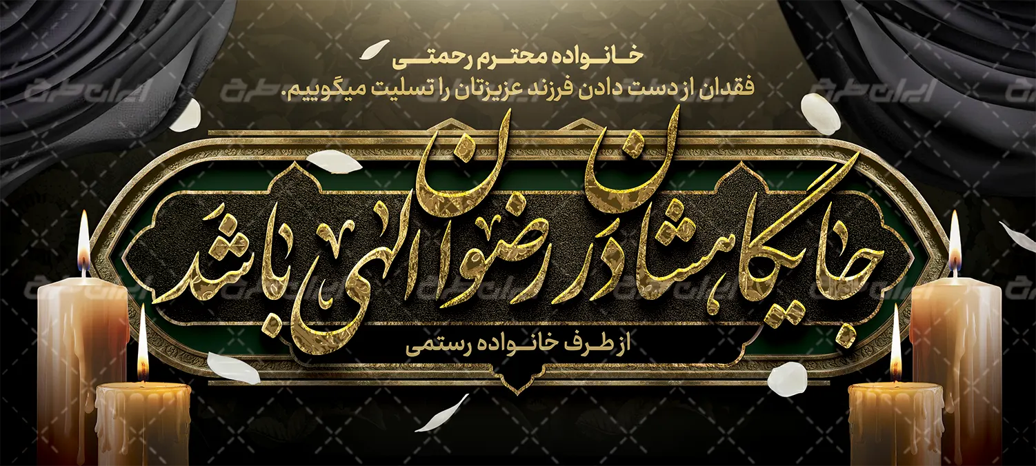 طرح بنر تسلیت ، توسط تیم حرفه ای ایران طرح جهت استفاده کاربران سایت طراحی و به صورت لایه باز در دسترس کاربران قرار گرفته است.