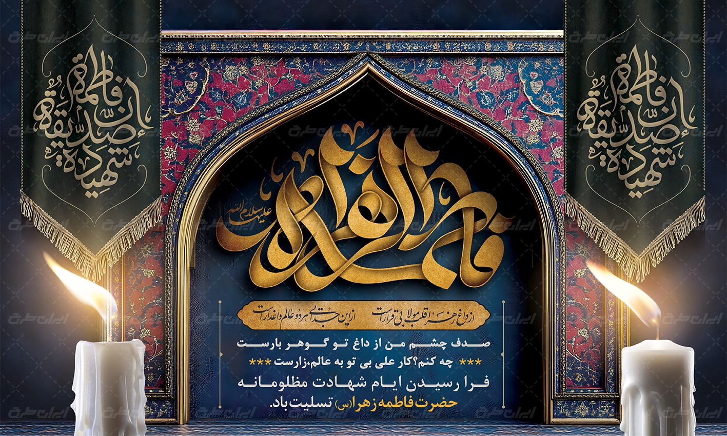 طرح بنر سالگرد شهادت حضرت فاطمه زهرا شامل: