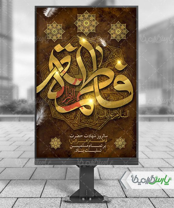 پوستر شهادت حضرت فاطمه (س) با پسوند psd طراحی شده و در نرم افزار فتوشاپ قابل یرایش است .
