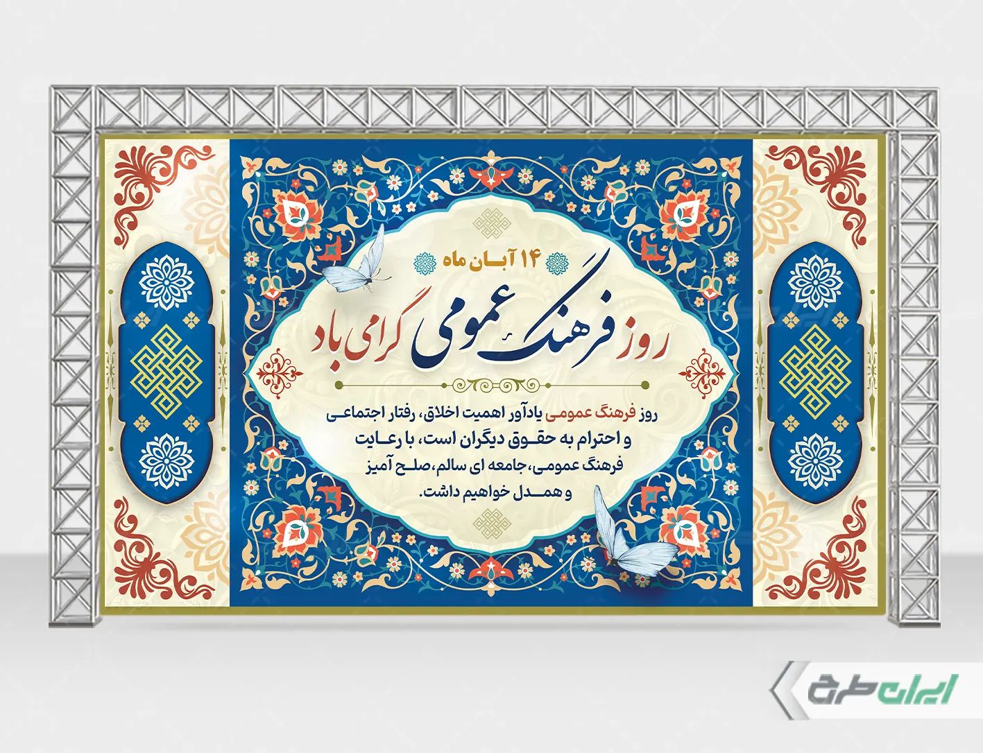 طرح بنر فرهنگ عمومی، توسط تیم حرفه ای ایران طرح جهت استفاده کاربران سایت طراحی و به صورت لایه باز در دسترس کاربران قرار گرفته است.