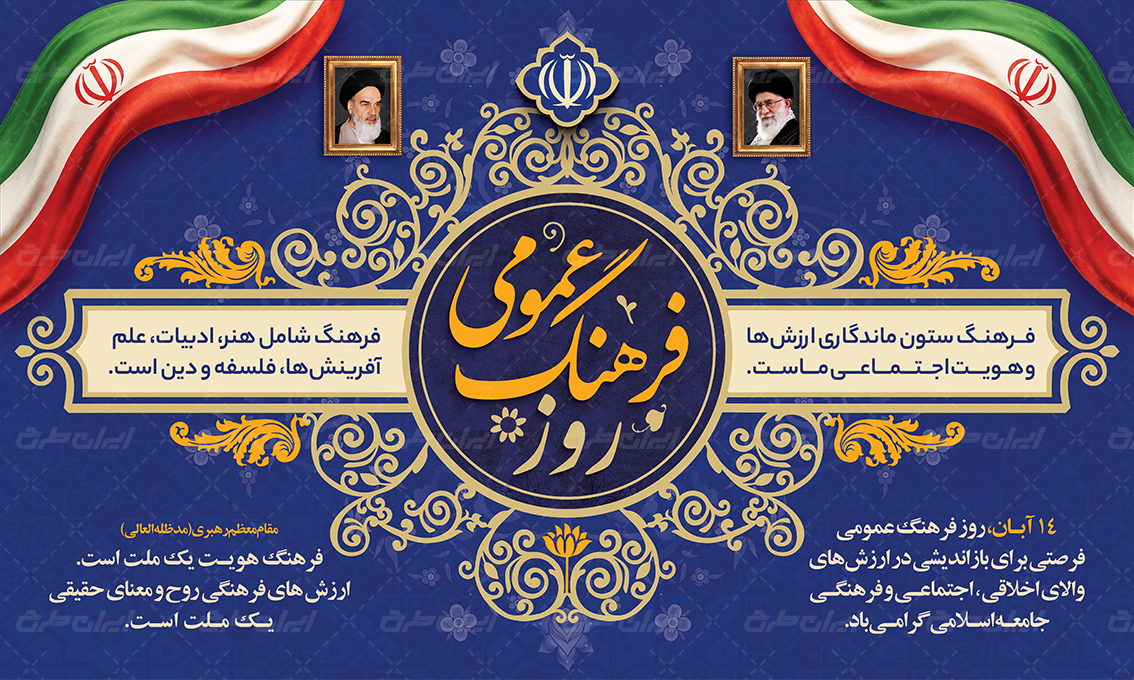 تصویر پرچم ایران و متن تبریک روز فرهنگ عمومی می باشد که توسط تیم ایران طرح طراحی شده است.