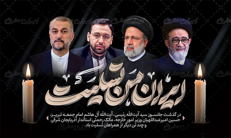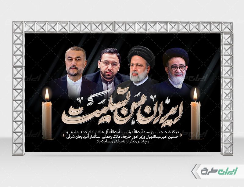 بنر تسلیت شهادت سید ابراهیم رئیسی، توسط تیم حرفه ای ایران طرح جهت استفاده کاربران سایت طراحی و به صورت لایه باز در دسترس کاربران قرار گرفته است.