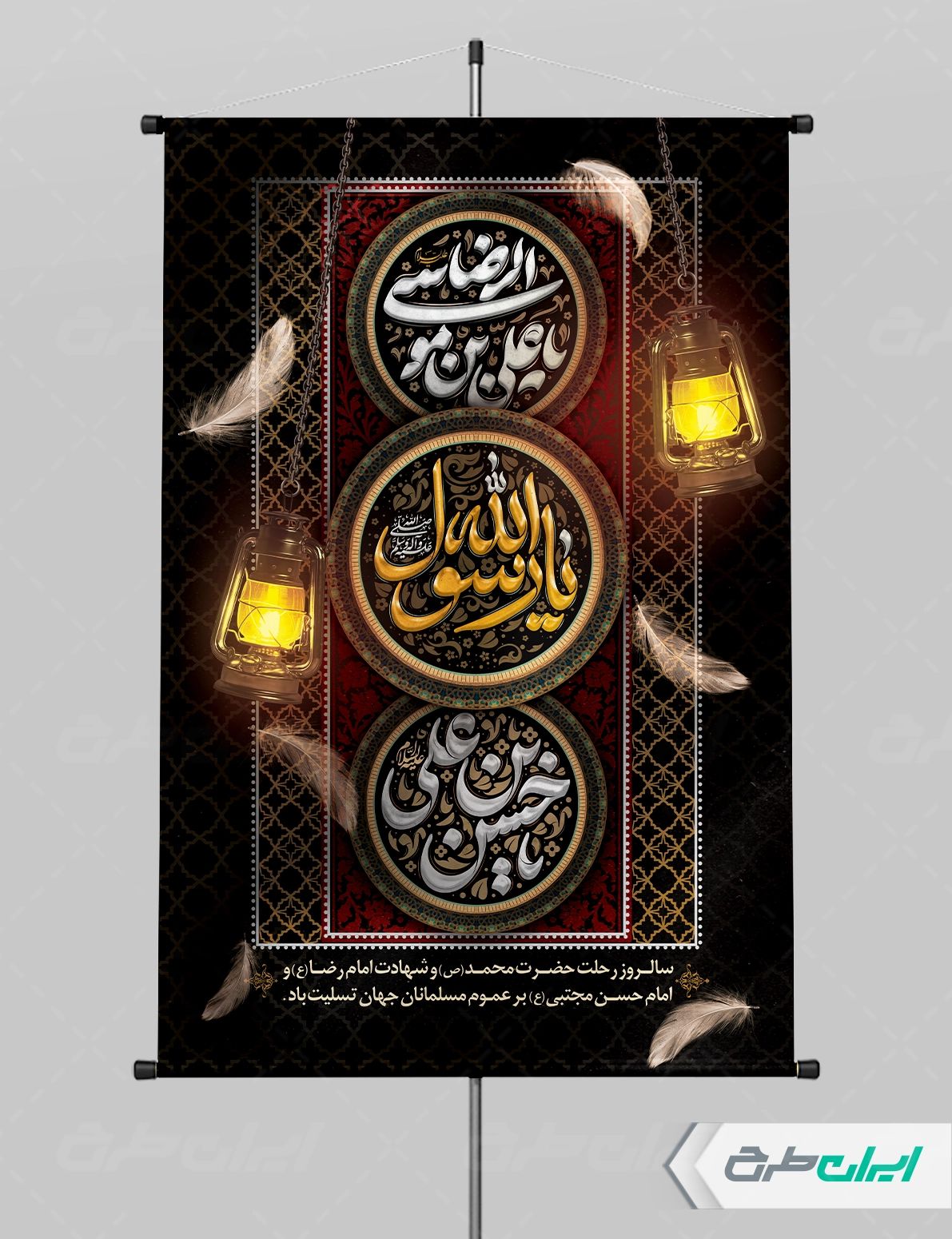 بنر لایه باز شهادت امام رضا و امام حسن مجتبی و رحلت پیامبر اکرم (ص)