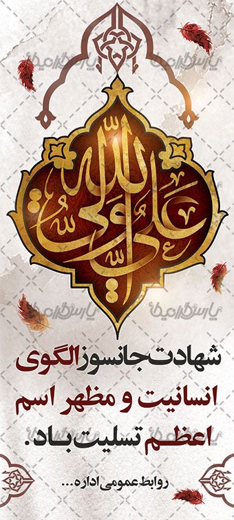بنر شهادت امام علی، توسط تیم حرفه ای پارس گرافیک جهت استفاده کاربران سایت طراحی و به صورت لایه باز در دسترس کاربران قرار گرفته است.