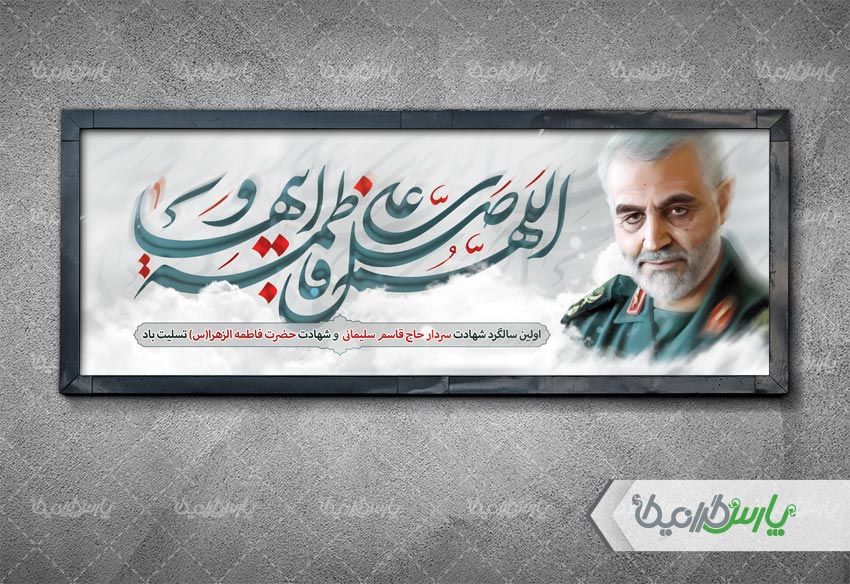 طرح بنر لایه باز تسلیت سالروز شهادت سپهبد حاج قاسم سلیمانی مصادف با ایام فاطمیه میباشد .