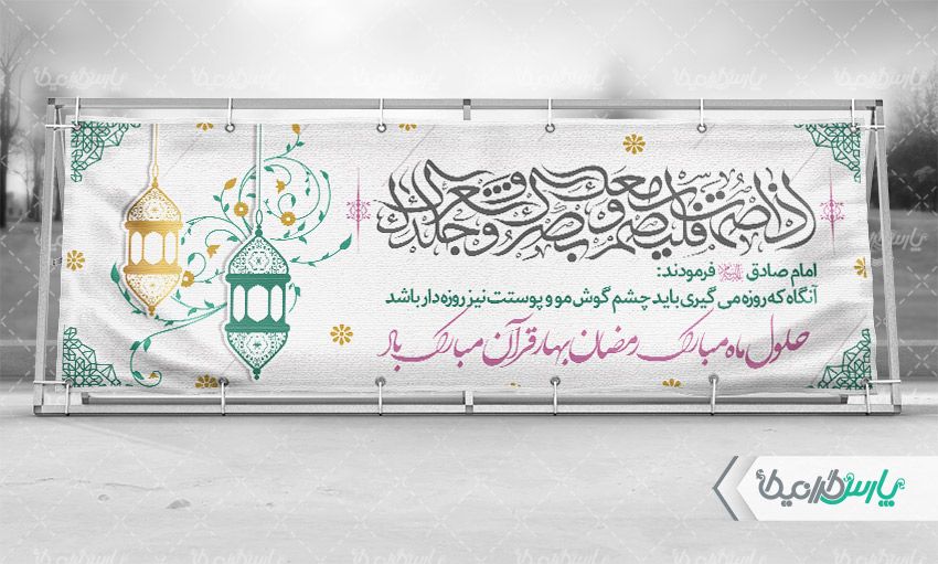 - هم نشینی مناسب رنگ سفید با طرح بنر ماه رمضان