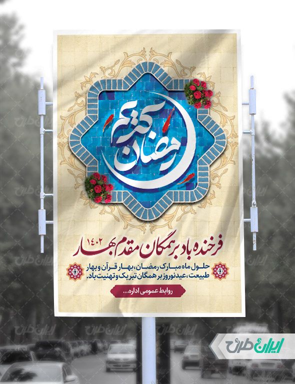 - طراحی بنر با استفاده از عکس باکیفیت طرح گل ، در طرح بنر ماه رمضان