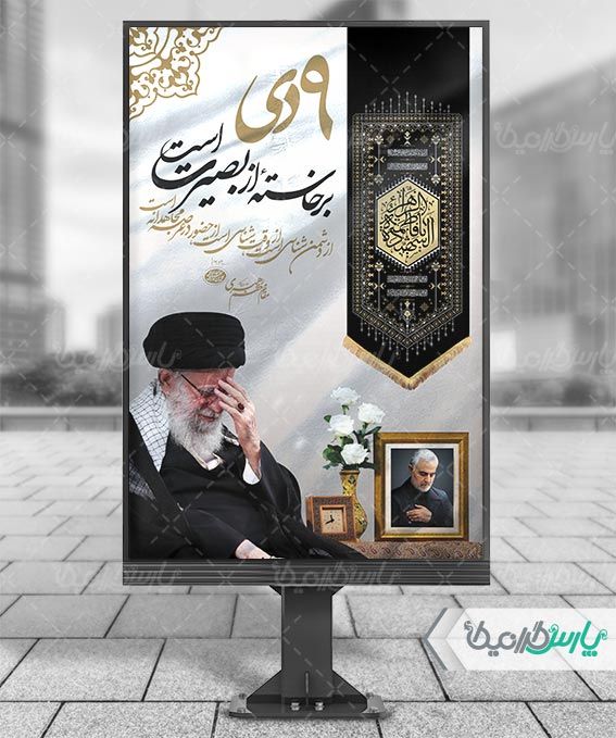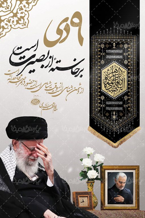استند روز نهم دی ماه، بنر لایه باز نهم دی ماه، طرح بنر لایه باز روز نهم دی ماه، بنر نهم دی ماه، بر مناسبتی، عکس با کیفیت امام خامنه ای، عکس شهید سلیمانی، متن 9 دی، متن گرامیداشت نهم دی