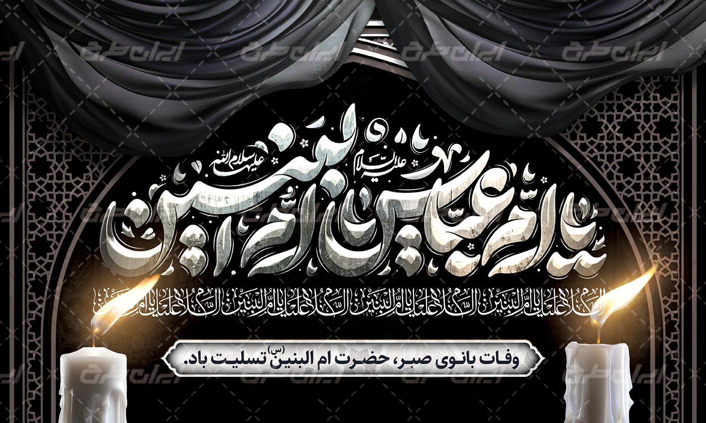 بنر وفات حضرت ام البنین، توسط تیم حرفه ای ایران طرح جهت استفاده کاربران سایت طراحی و به صورت لایه باز در دسترس کاربران قرار گرفته است.