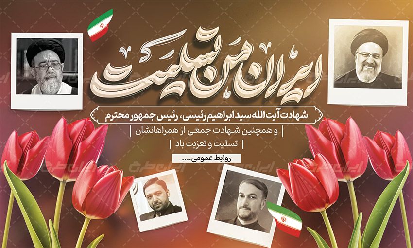 بنر تسلیت شهادت سید ابراهیم رئیسی، توسط تیم حرفه ای ایران طرح جهت استفاده کاربران سایت طراحی و به صورت لایه باز در دسترس کاربران قرار گرفته است.