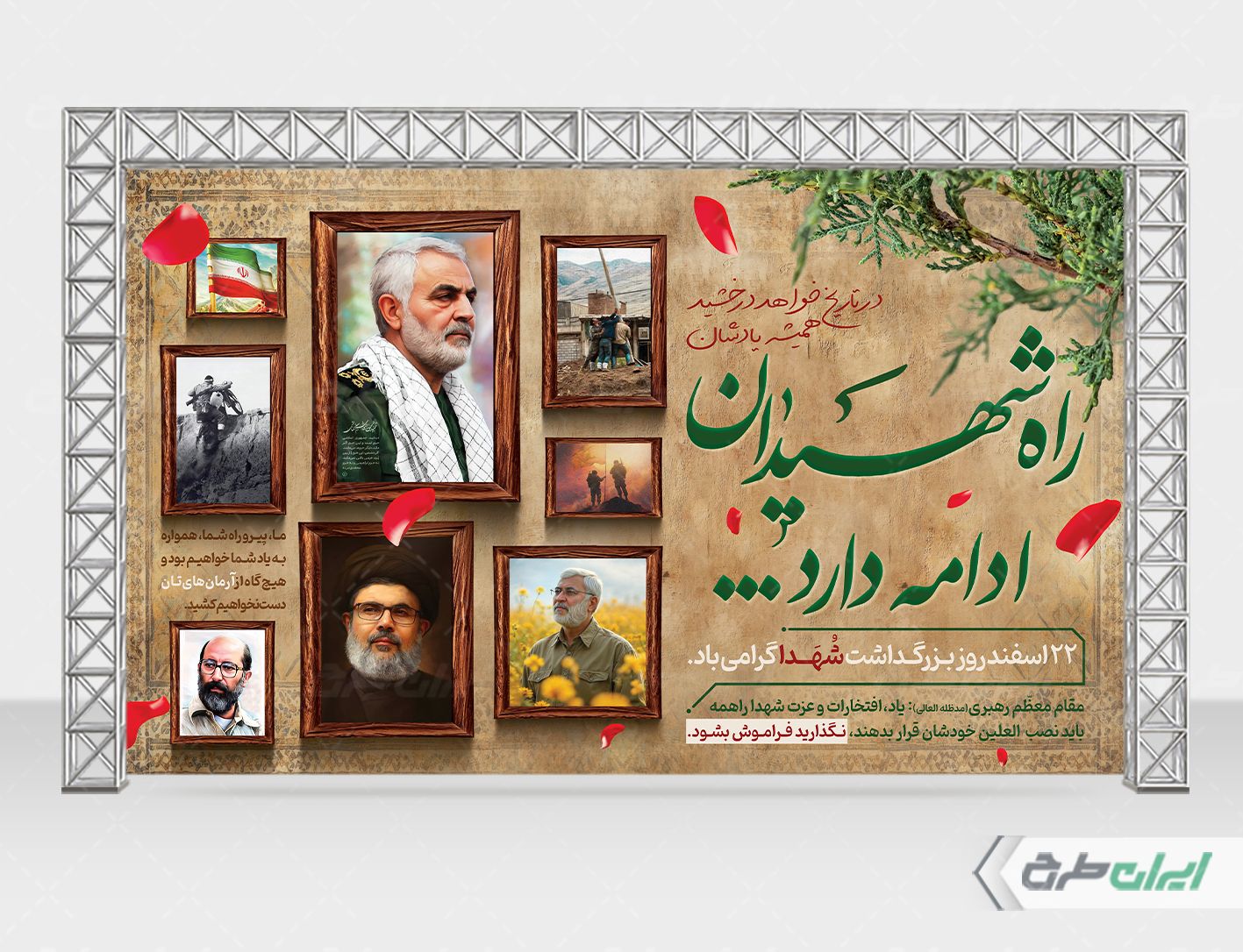 طرح بنر یادواره شهدا، توسط تیم حرفه ای ایران طرح جهت استفاده کاربران سایت طراحی و به صورت لایه باز در دسترس کاربران قرار گرفته است.