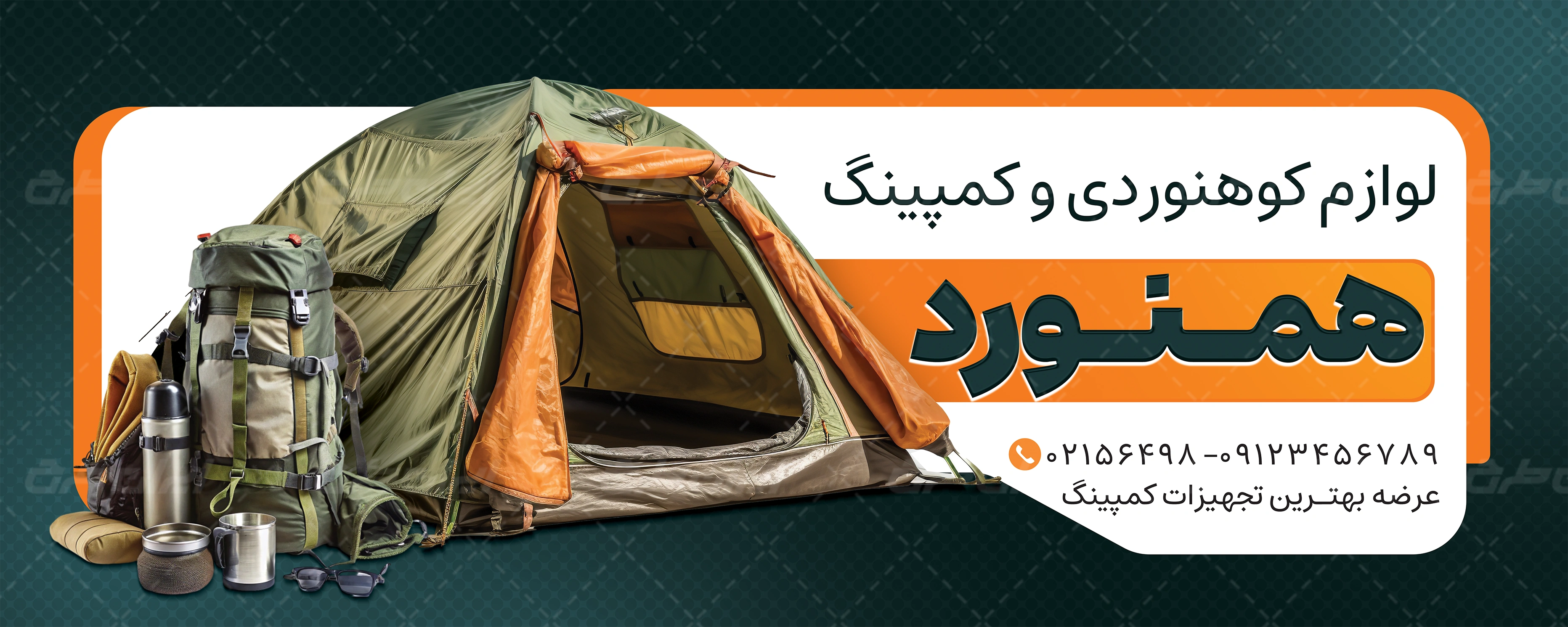 طرح بنر لایه باز فروشگاه تجهیزات مسافرتی ، توسط تیم ایران طرح جهت تبلیغات و بازاریابی این مکان ها طراحی و در دسترس کاربران سایت قرار گرفته است.
