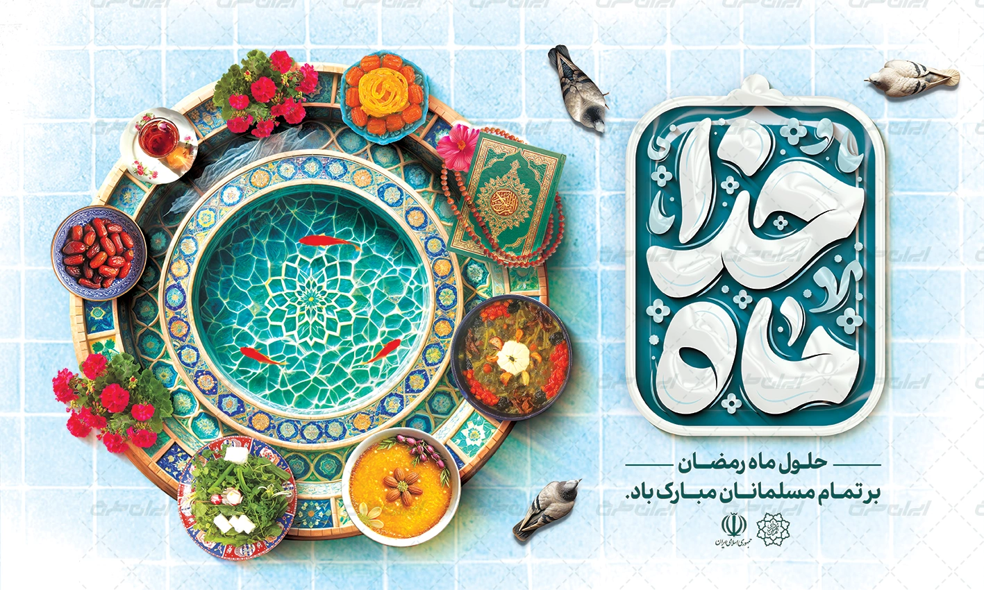تایپوگرافی ماه خدا، تصویر ماه و گل و متن گرامیداشت ماه رمضان می باشد که توسط تیم ایران طرح طراحی شده است.