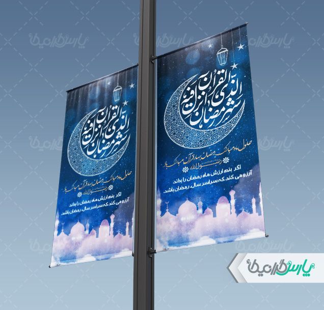 - هم نشینی مناسب رنگ آبی با طرح بنر ماه رمضان