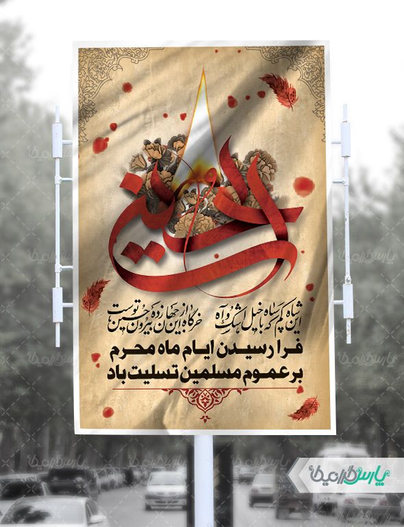 طرح بنر لایه باز ایام سوگواری محرم شامل: تایپوگرافی حسین، کادر مذهبی، کادر تذهیب، شمع، لکه خون، طرح گل، شعر محرم و متن تسلیت ایام محرم می باشد که توسط طراحان پارس گرافیک در نرم افزار فتوشاپ طراحی شده است. به دلیل لایه باز (قابل ویرایش توسط کاربران در نرم افزار فتوشاپ Adobe Photoshop) بودن و کیفیت بالای عناصر و المان های استفاده شده در طرح، می توانید علاوه بر چاپ بنر(به صورت عمودی)، در استوری اینستاگرام و سایر پلت فرم های فضای مجازی جهت عرض تسلیت و ابراز همدردی با امت بزرگ اسلامی استفاده نمایید.