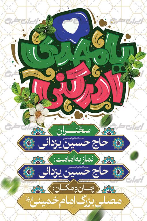پیام ایمان و انتظار: تایپوگرافی "یا مهدی ادرکنی" در این بنر نمایانگر پیام ایمان و انتظار ما به ظهور امام مهدی (عج) است. این عبارت معروف در شیعه به معنای "ای مهدی، به ما کمک کن" است و نمایانگر ارتباط ما با امام مهدی (عج) در زمان غیبت او است.