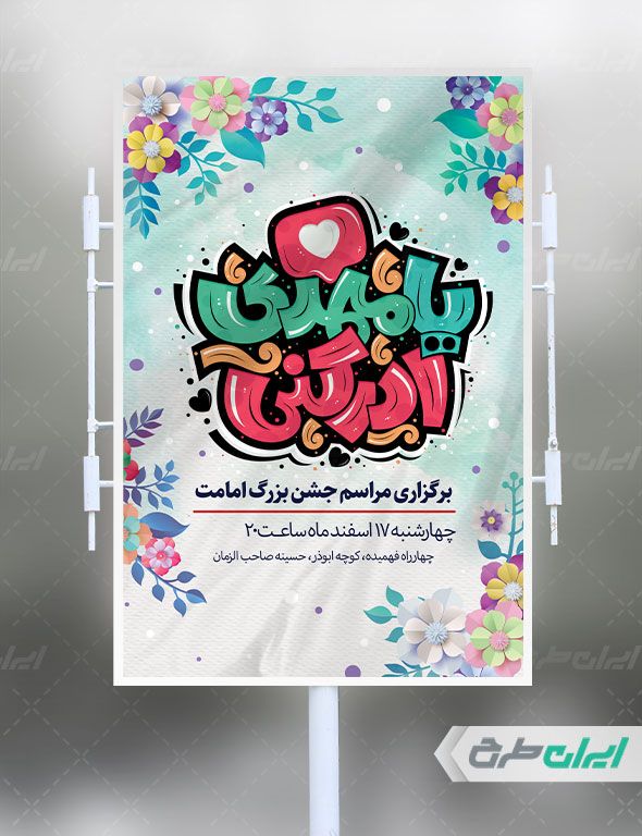 طرح بنر آغاز امامت حضرت مهدی شامل: تایپوگرافی سلام یا مهدی و متن تبریک آغاز امامت امام زمان می باشد که توسط تیم ایران طرح طراحی شده است. به دلیل استفاده از عناصر و المان های با کیفیت در طرح بنر مناسبتی ، می توانید علاوه بر چاپ بنر (به صورت عمودی)، در استوری اینستاگرام و یا دیگر پلت فرم های فضای مجازی استفاده نمایید. ضمنا به دلیل لایه باز بود طرح بنر آغاز امامت حضرت مهدی می توانید با استفاده از نرم افزار فتوشاپ طرح را ویرایش نمایید.