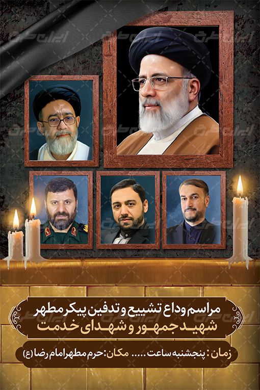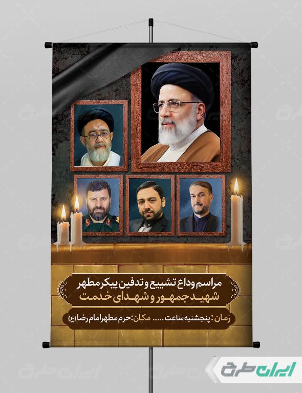بنر تسلیت شهادت سید ابراهیم رئیسی، توسط تیم حرفه ای ایران طرح جهت استفاده کاربران سایت طراحی و به صورت لایه باز در دسترس کاربران قرار گرفته است.