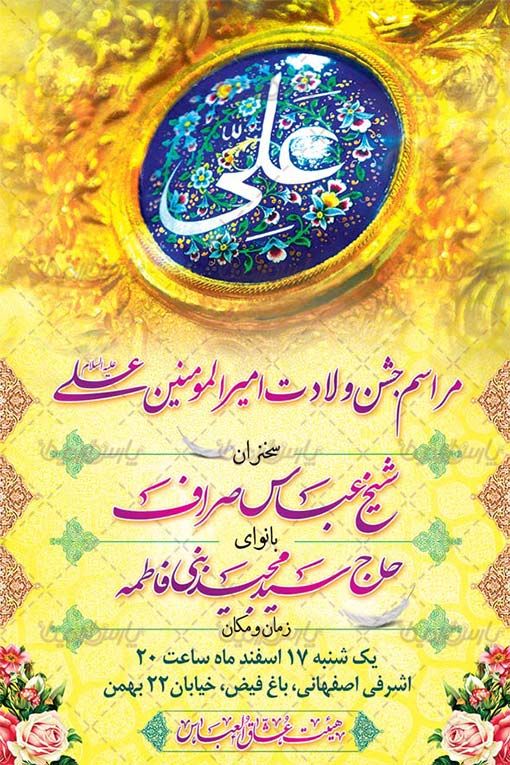 بنر لایه باز اطلاع رسانی مراسم جشن روز ولادت امام علی (ع) و روز پدر