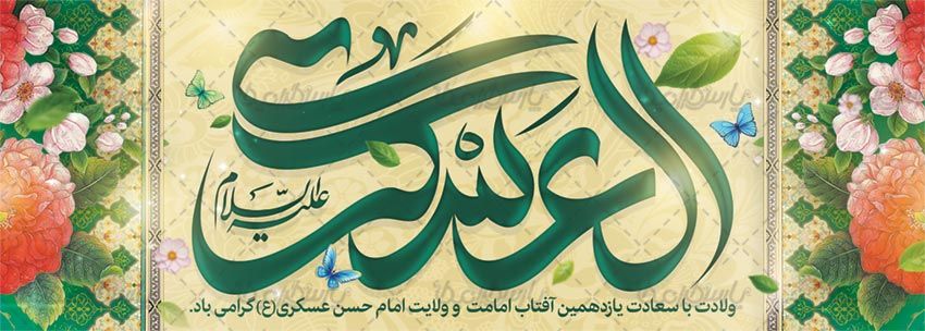 بنر ولادت امام حسن عسکری، جشن ولادت امام حسن عسکری، طرح بنر ولادت امام حسن عسکری، بنر لایه باز ولادت امام حسن عسکری، بنر لایه باز، بنر مناسبتی، تایپوگرافی