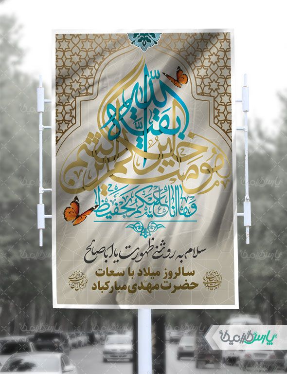 طرح بنر ولادت امام مهدی شامل: پروانه و متن گرامیداشت ولادت امام مهدی (عج) می باشد که توسط تیم پارس گرافیک طراحی شده است. به دلیل استفاده از عناصر و المان های با کیفیت در طرح بنر مناسبتی ، می توانید علاوه بر چاپ بنر (به صورت افقی)، در استوری اینستاگرام و یا دیگر پلت فرم های فضای مجازی استفاده نمایید. ضمنا به دلیل لایه باز بود طرح بنر ولادت امام مهدی (عج) می توانید با استفاده از نرم افزار فتوشاپ تغییرات دلخواه خود را اعمال کنید.