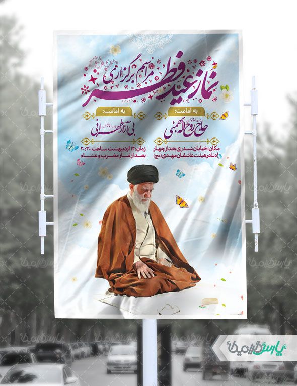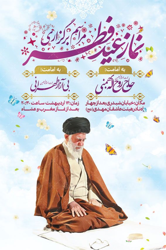 - طراحی بنر با استفاده از تصویر ایت الله خامنه ای در طرح بنر عید فطر